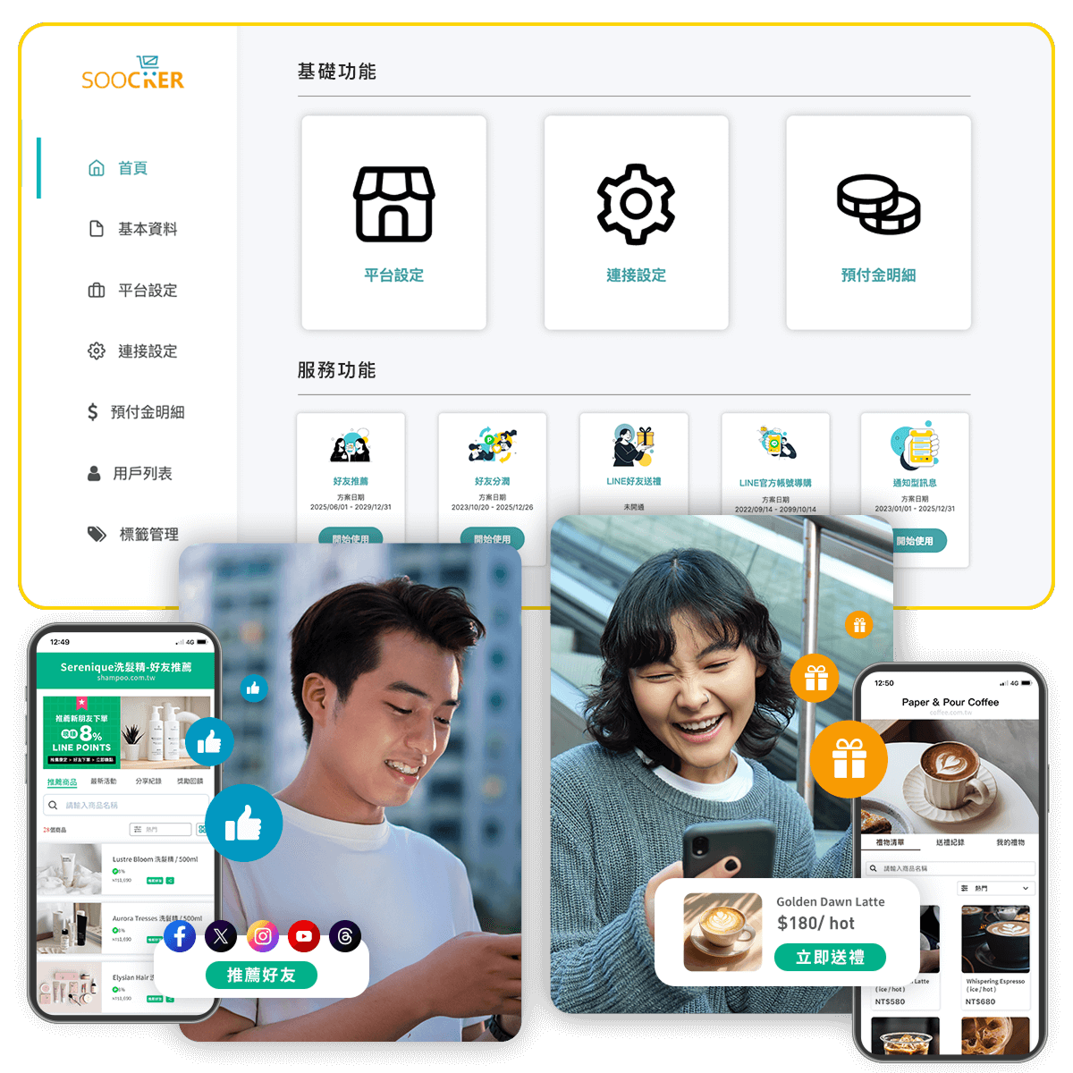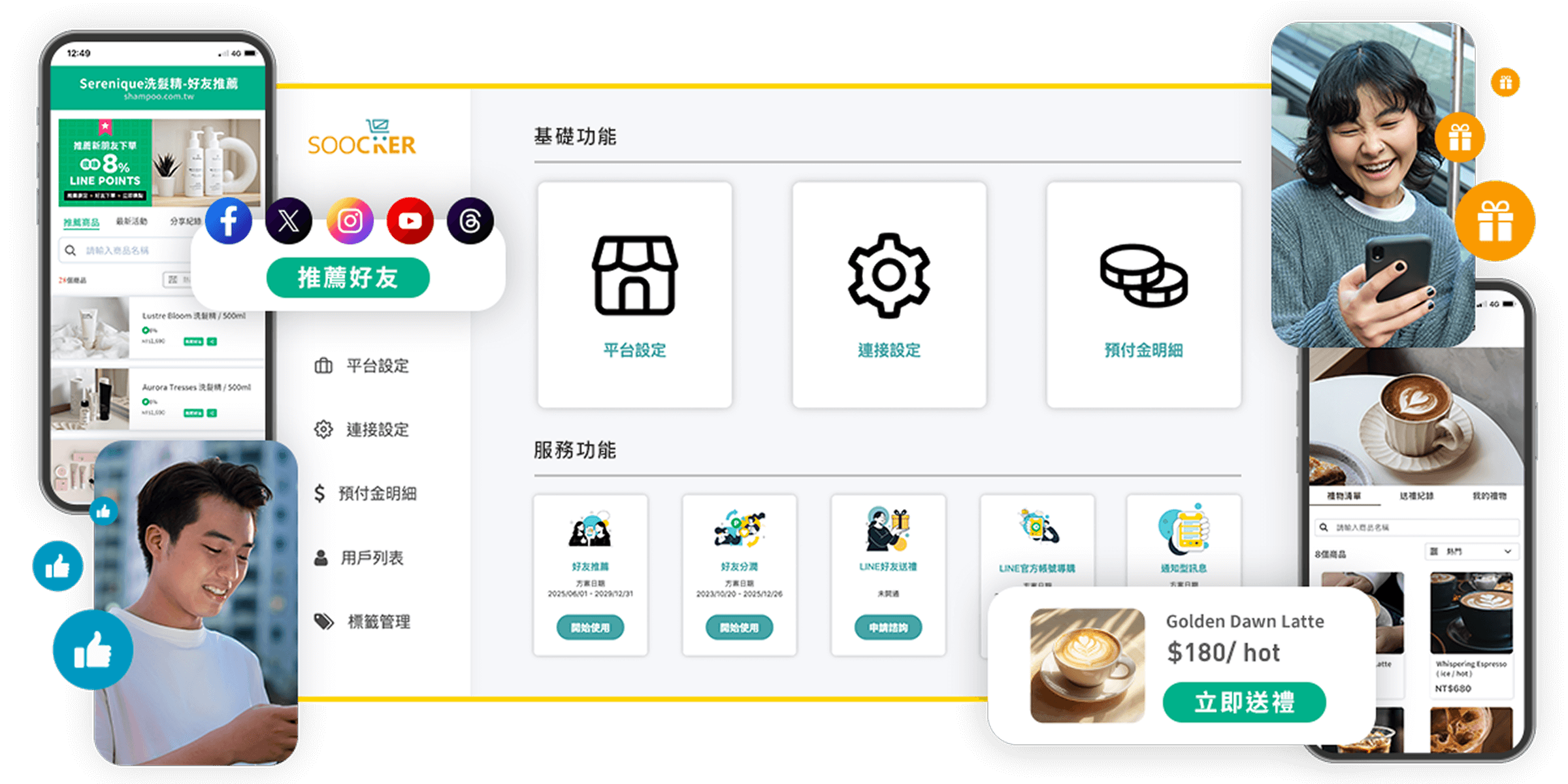 SOOCKER 搜客系統整合口碑與推薦行銷,協助品牌活化會員,延續顧客終身價值,驅動品牌成長!