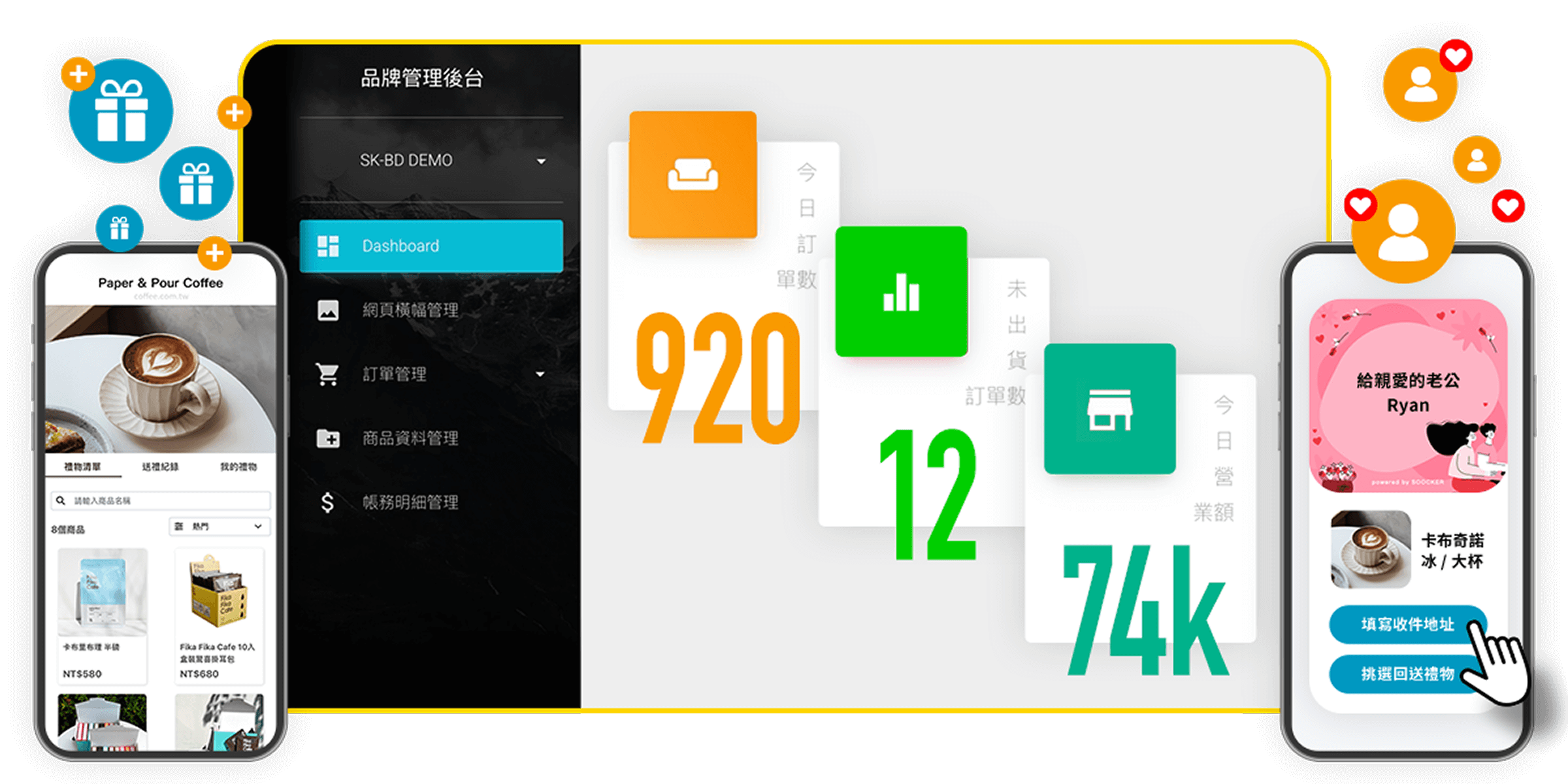 • 支援多種商品樣式:電子票券、實體禮盒、客製小物
