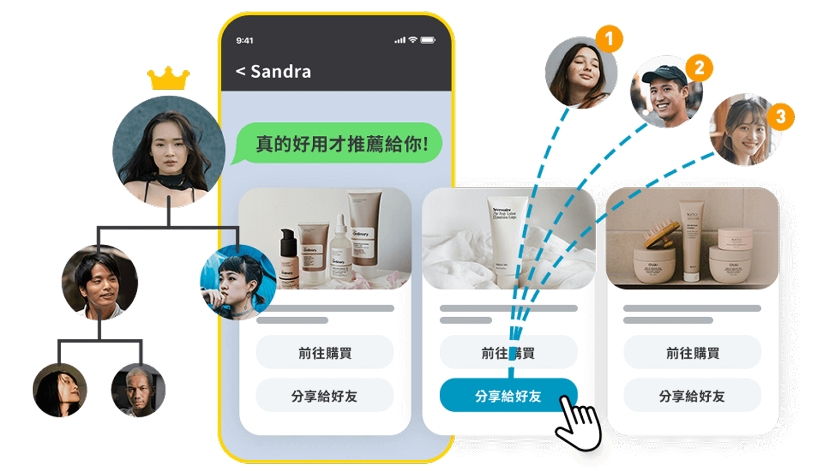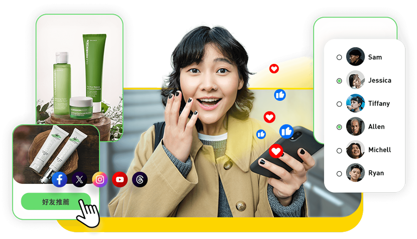 一套系統對應多種口碑推薦情境,讓熟客變推手,用推薦帶新客,打造品牌自家的KOC大軍,有效降低轉換成本。